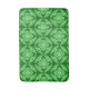 Bath mat in a classic Japanese kimono pattern of stylised, four-way, medallions of leaves and flowers in light green on a dark jade green background