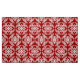 Fabric in a classic Japanese kimono pattern of stylised, four-way, medallions of leaves and flowers in white on a deep Chinese red background
