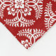 Fleece blanket in a classic Japanese kimono pattern of stylised, four-way, medallions of leaves and flowers in white on a deep Chinese red background