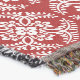 Throw in a classic Japanese kimono pattern of stylised, four-way, medallions of leaves and flowers in white on a deep Chinese red background