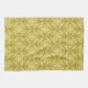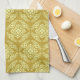 Kitchen towel in a classic Japanese kimono pattern of stylised, four-way, medallions of leaves and flowers in light yellow on a deep mustard / golden yellow background