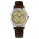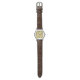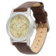 Watch in a classic Japanese kimono pattern of stylised, four-way, medallions of leaves and flowers in light yellow on a deep mustard / golden yellow background