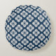Japanese Navy Blue Ivory Floral Geometric Pattern Round Cushion