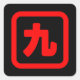 Japanese Number Nine 九 【Kyu】 Kanji Square Sticker