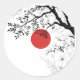Japanese Red Sun & Brush Tree Art Classic Round Sticker