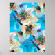 Japanese Sakura Cherry Tree Flowers in Aqua Blue Poster