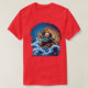 I give wanted to give this a 4 instead of a 5 because these Basic DARK T0shirts run unexpectedly SLIM or Narrow. Which is great if you do not have a potbelly, but I have a paunch. It isn't the shirt's fault that I've got a beer belly. The design and shirt itself is a quality cotton shirt. The color is more of a deep purple, but still a very pretty color. The Basic DARK T-shirts run a bit SLIMMER than the Basic Ts. The neck is a fraction narrower (or seems to be narrower) also. I'm a paunchy middle-aged woman and my neck is 12 inches (31cm) thick and the neckline fell about the same as in the photo of the man, and I had the desire to tug it a bit. So if you're a thick necked man or like loose shirts, be aware these are slimmer shirts. Once I get rid of my lockdown paunch it'll look great. The shirt washed well in cold water with no apparent bleeding. We don't have a dryer, so it hung dry. Did not shrink. Love the colors and the design. The design looks smaller on my shirt than it does on the model on-line. But still, it looks good on the shirt. The printing looks as it does on the model, just the size seems fractionally smaller. Washed garment in cold water, hung dry and design appeared unaffected.