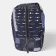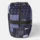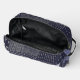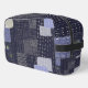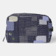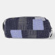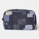Dark blue cosmetic bag with traditional japanese sashiko printed design that resembles stiches and patches.