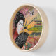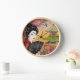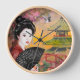 This clock features a beautiful Japanese with a scene of a Japanese house, Japanese woman wearing traditional clothes and Sakura blossoms.