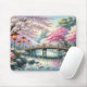 Japanese Scenery with Bridge, Koi and Sakura trees Mouse Mat