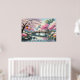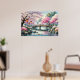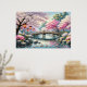 Japanese Scenery with Bridge, Koi and Sakura trees Poster