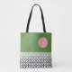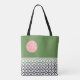 This trendy green bag features a classic Japanese "shippou" pattern of overlapping circles and flowers on the bottom half, with a cherry blossom crest in the top corner. The default background colour is green, and grades to black at the bottom. Open the customisation editor to change the bag colour or add your name! Be sure to change the colour on both sides of the bag!