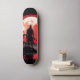The skateboard has a visual design representing a Japanese samurai. This samurai is watching on a night with a full moon, suggesting an atmospheric and perhaps mysterious scene. The combination of skateboarding, an element associated with sports and mobility, with the Samurai figure, which evokes Japanese culture and history, creates an interesting fusion of modern and traditional elements. The image of a samurai at night evokes feelings of serenity, strength and reflection, offering a unique visual experience for those watching the skateboard.
