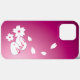 A very cute iPhone 13 Pro Max Case with an illustration of two sakura flowers, two Japanese snow rabbits, and four sakura flower petals against a purple background. Also available for other phone types!