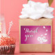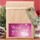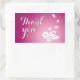 A set of customisable "Thank you" purple rectangle stickers with an illustration of two cute Japanese snow rabbits, two sakura flowers, and four sakura flower petals against a purple background on the lower right corner. The words "Thank you" are customisable.