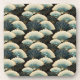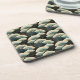 Japanese Style Cream Gold Teal Fan Print Coaster