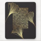 Set of luxury gold wall art. Golden ginkgo Biloba leaves and geometric elements. Japanese style line art with branches. Linear plants on black background. Abstract minimalist art mural illustration