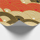 Japanese style scales waves seamless pattern in red gold ivory shades