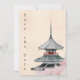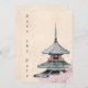 This wedding Save the Date invitation captures the oriental beauty of Japan. It has a vintage inspired background with a painted Japanese Buddhist temple and branches of a cherry blossom tree.