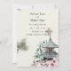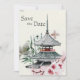 This wedding Save the Date invitation captures the oriental beauty of Japan. It has a beautiful natural background with a painted Japanese Buddhist temple, bamboo and branches of a cherry blossom tree.