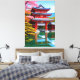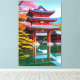 Trees and nature surround the Japanese temple and reflects off the nearby water art.