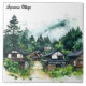 A beautiful Japanese village in the mountains created in a watercolor style is another village in my landscapes collection. Each country village complimets one another so that you can choose more than one. These watercolor style village landscapes really break up a plain white wall or splashback and make the room more warm and welcoming.