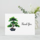 traditional watercolor artwork of a japanese bonsai tree growing from a blue bowl on a thank you card