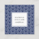 Navy blue Japanese wave pattern, professional business cards. Back of card features golden social media icons and multiple template text lines for your business information including, name, title, email, phone, address and website.