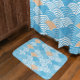Japanese Waves Pattern Light Blue Beige White Bath Mat