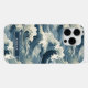Make a statement with this iphone 16 pro max phone case that features rolling Japanese waves in multiple shades of teal blue. It's modern yet traditional. The pattern represents surges of good luck, peace, and eternal resilience. It becomes uniquely yours with your name in a CAP font in white on dark teal.