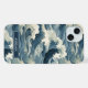 Make a statement with this iphone 15 plus phone case that features rolling Japanese waves in multiple shades of teal blue. It's modern yet traditional. The pattern represents surges of good luck, peace, and eternal resilience. It becomes uniquely yours with your name in a CAP font in white on dark teal.