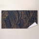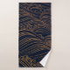 Japanese Waves Pattern Navy Blue and Gold Brown Bath Towel Set