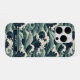 Make a statement with this iphone 16 pro phone case that features rolling Japanese waves in multiple shades of teal blue. It's modern yet traditional. The pattern represents surges of good luck, peace, and eternal resilience. It becomes uniquely yours with your name in a CAP font in white on dark teal.