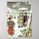 Vintage colour lithograph from 1873 of a Japanese winter scene