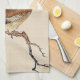 Japanese Woodcut of a Finch, Brown and Beige Tea Towel