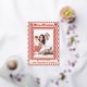 This elegant red and cream design blends cultural inspiration with a clean, contemporary layout, creating a unique and refined way to share your holiday greetings. The bold geometric border frames your photo beautifully, while the personalized message adds a warm, heartfelt touch.