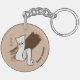 One of the many monsters in Japanese culture is the yokai spirit Ittan-momen! An Ittan-momen is a length of cloth that has come to life due its age, often tangling people within its body. This keychain features a cute cartoon drawing of an Ittan-momen (一反木綿; "one unit of cotton material"). Its name, in both English and Japanese kanji, appears in the background, along with a decorative brown paint streak.