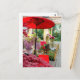 和傘と牡丹、藤の花などの日本のシーンを写したポストカードです☆
