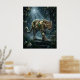 A sleek jasmine leopard moves silently through a moonlit jungle where danger meets floral elegance. Powerful leopard anatomy merges with jasmine blossoms, glossy leaves, vine textures, and subtle rosette patterns across its graceful body. Silver light beams, carved stone ruins, drifting petals, misty pathways, and dense tropical foliage create a rich cinematic setting. This luxurious fantasy predator design brings bold sophistication to modern interiors, offices, bedrooms, or statement gift collections. Perfect for leopard lovers, jungle decor fans, and dark botanical style themes.