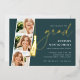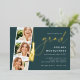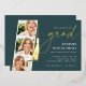 Celebrate their big milestone with these chic foil invitations that are perfect for a graduation celebration. Luxe design features "grad" and a graduation cap tassel illustration in elegant gold foil on a rich green background. Personalise with your party details aligned at the right in modern white lettering. Finish the design with three square photos of the graduate in a photo strip layout.