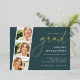Celebrate their big milestone with these chic foil invitations that are perfect for a graduation celebration. Luxe design features "grad" in elegant gold foil on a rich jasper green background. Personalise with your party details aligned at the right in modern white lettering. Finish the design with three square photos of the graduate in a photo strip layout.