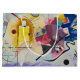 Jaune, Rouge, Bleu by Wassily Kandinsky, 1925. A vintage fine art piece blending abstract art with geometric expressionism. There are two contrasting parts of geometric lines plus the luminous primary colors from left to right of yellow, red and blue.