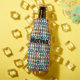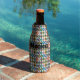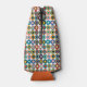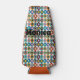 This bottle cooler has a Bauhaus design of ovals four layers thick on a field of white.