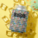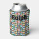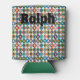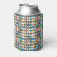 This can cooler has a Bauhaus design of ovals four layers thick on a field of white.