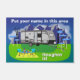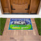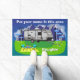This doormat can be customised to show your name on top. When used outside of your trailer, people will know who they are talking to when they see you. Non-slip rubber that won't crack or buckle, this mat resists fading, mould, and mildew and can be easily cleaned with a hose. This version has a travel trailer similar to a Jayco Jayflight trailer. It can be used indoors or out and makes a great welcome mat for your campsite, wherever you may go.