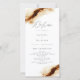 This wedding program features bohemian watercolor splashes with burnt orange terracotta rust colouring and an edgy script font. Use this order of service wedding day timeline for your bohemian desert wedding or modify for any other event.