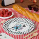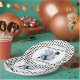 Here's a fun and colourful paper plate for celebrating the new year! This one features our black cat in silhouette playing a piano (abstract design) with music notes surrounded by fireworks, champagne glasses, balloons, and a noisemaker. You can update the bottom text as you see fit, prior to placing into your shopping cart.