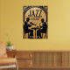 This stylised painting is a graphic depiction of a jazz concert. Two musicians, rendered in black silhouettes, are seated and performing, one playing a trumpet and the other a saxophone. The background is a large, textured gold circle with the words "JAZZ CONCERT" in bold black letters. The artwork has a minimalist yet elegant aesthetic, combining the classic feel of a jazz performance with a modern, decorative style.