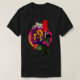 I give wanted to give this a 4 instead of a 5 because these Basic DARK T0shirts run unexpectedly SLIM or Narrow. Which is great if you do not have a potbelly, but I have a paunch. It isn't the shirt's fault that I've got a beer belly. The design and shirt itself is a quality cotton shirt. The color is more of a deep purple, but still a very pretty color. The Basic DARK T-shirts run a bit SLIMMER than the Basic Ts. The neck is a fraction narrower (or seems to be narrower) also. I'm a paunchy middle-aged woman and my neck is 12 inches (31cm) thick and the neckline fell about the same as in the photo of the man, and I had the desire to tug it a bit. So if you're a thick necked man or like loose shirts, be aware these are slimmer shirts. Once I get rid of my lockdown paunch it'll look great. The shirt washed well in cold water with no apparent bleeding. We don't have a dryer, so it hung dry. Did not shrink. Love the colors and the design. The design looks smaller on my shirt than it does on the model on-line. But still, it looks good on the shirt. The printing looks as it does on the model, just the size seems fractionally smaller. Washed garment in cold water, hung dry and design appeared unaffected.