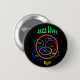 For those who love jazz, this button is a celebration of the very best of the bebop and post-bop eras. Colourful circles of red, blue, purple, white and turquoise enclose some of the great musicians. All is set off by yellow and green text on a pure black background.